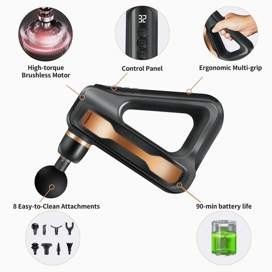 With 32 adjustable speed levels and 8 interchangeable massage heads, the gun provides a customized massage experience for different muscle groups, including facial muscles, sinus areas, arms, legs, and back. The high-frequency hammering-style action penetrates deep tissue, breaks down scar tissue, clears lactic acid, and increases blood flow, helping accelerate recovery, improve range of motion, and release tension.