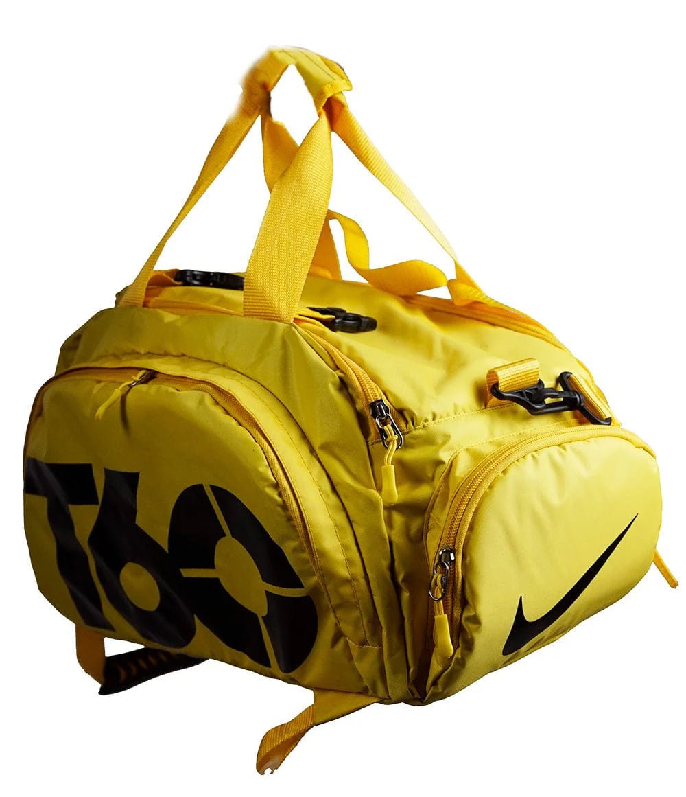 The bag features a separate shoe compartment, keeping footwear isolated from clothes and other essentials. Its spacious interior easily accommodates sports gear, accessories, and personal items.