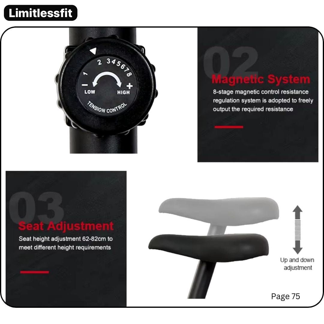 Magnetic Resistance System: With 8 adjustable resistance levels, the bike caters to all fitness levels, allowing beginners to ease into their workouts while providing seasoned athletes the challenge they seek. The 2kg disc combined with adjustable load intensity lets you customize the difficulty of each session to continuously make progress.